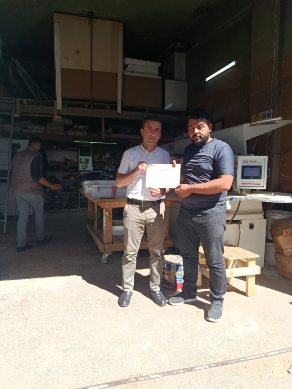 Mesleki Eğitim Merkezimizin Atölye Kuruluşu sürecinde katkıda bulunan işletmelerimize İlçe Kaymakamlığımız tarafından düzenlenen teşekkür belgeleri, Eğitim Merkezi Müdürümüz Sayın Talha MERCİMEK tarafından takdim edildi. Emeği geçen tüm işletmelerimize teşekkür ederiz.